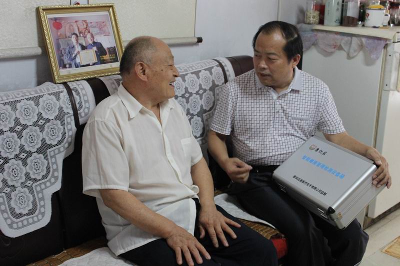 2015年7月25日,泰安邁迪醫(yī)療電子有限公司,攜帶家庭遠(yuǎn)程醫(yī)療健康監(jiān)測(cè)設(shè)備,來到肥城市抗美援朝老英雄張成功老人家中,贈(zèng)送健康監(jiān)護(hù)儀器。對(duì)抗戰(zhàn)老英雄進(jìn)行慰問??偨?jīng)理范世忠親自給老人查體,手把手的教老人使用本公司研發(fā)生產(chǎn)的高科技健康監(jiān)護(hù)儀。當(dāng)老人看到查體結(jié)果一切正常,非常高興。特別是當(dāng)老人知道,自己的檢測(cè)結(jié)果,能實(shí)時(shí)的發(fā)送到自己和親屬的手機(jī)上,而且還能傳到醫(yī)院,由醫(yī)生遠(yuǎn)程診斷結(jié)果時(shí),異常興奮,開朗的老人,大呼現(xiàn)代高科技的奇妙。
