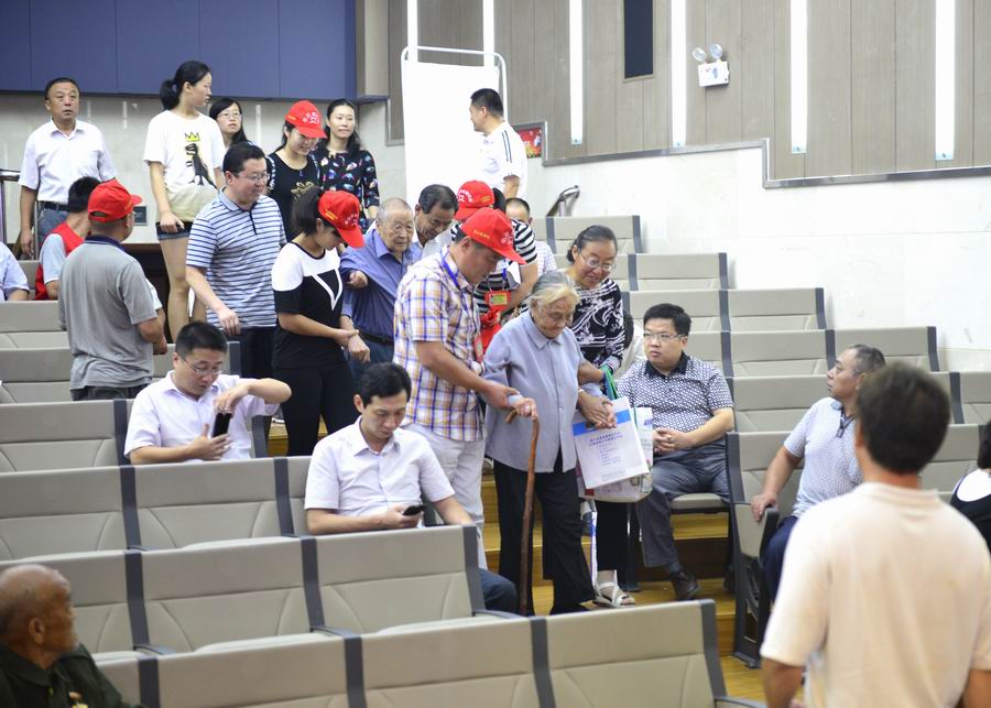 志愿者攙扶抗戰(zhàn)老兵進(jìn)入會(huì)場