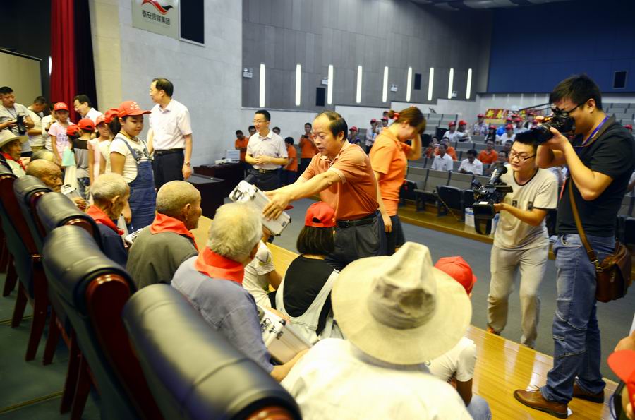 泰安邁迪公司董事長范世忠為抗戰(zhàn)老兵發(fā)放健康監(jiān)護(hù)儀