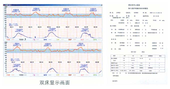 ◆自動分析:監(jiān)護過程中,系統(tǒng)實時在線自動分析所有參數(shù)的變化情況,并給出診斷結(jié)果及胎兒評分等相關(guān)信息。