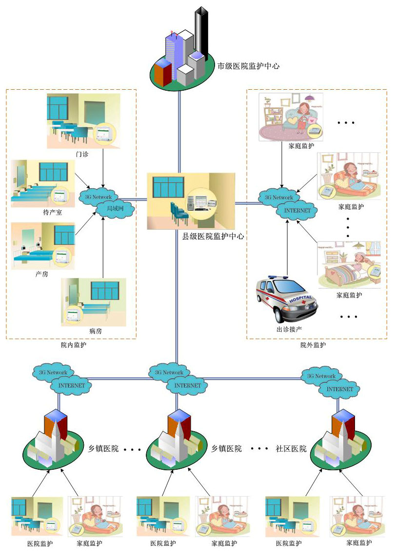 以縣級(jí)醫(yī)院為龍頭,將全縣多家基層醫(yī)院連接成覆蓋全縣的無(wú)線遠(yuǎn)程母嬰中央監(jiān)護(hù)網(wǎng)絡(luò)系統(tǒng),多家基層醫(yī)院對(duì)孕婦的信息同時(shí)傳輸?shù)娇h級(jí)醫(yī)院婦產(chǎn)科,由縣級(jí)醫(yī)院婦產(chǎn)科專家進(jìn)行遠(yuǎn)程分析和診斷,指導(dǎo)基層醫(yī)院醫(yī)護(hù)人員進(jìn)行分析和處理,提高了基層醫(yī)院婦產(chǎn)科醫(yī)護(hù)人員的業(yè)務(wù)素質(zhì)和診療水平,避免醫(yī)療事故及糾紛的發(fā)生;對(duì)于異常情況的孕婦及胎兒,及時(shí)轉(zhuǎn)院到縣級(jí)醫(yī)院婦產(chǎn)科,為孕婦及胎兒的急救爭(zhēng)取了寶貴時(shí)間。