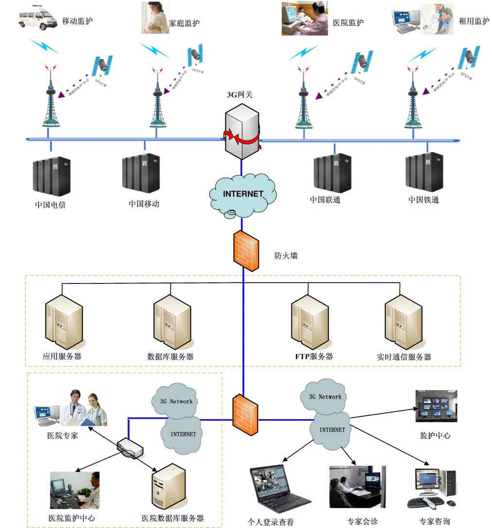 無(wú)線遠(yuǎn)程母嬰監(jiān)護(hù)網(wǎng)絡(luò)系統(tǒng),可同時(shí)將縣級(jí)醫(yī)院與多家鄉(xiāng)鎮(zhèn)醫(yī)院、社區(qū)醫(yī)院及家庭進(jìn)行聯(lián)網(wǎng),孕婦在鄉(xiāng)鎮(zhèn)醫(yī)院、社區(qū)醫(yī)院及家庭監(jiān)護(hù)的心電、血壓、血氧飽和度、脈搏心率及胎兒的瞬時(shí)胎心率、宮縮壓力、胎動(dòng)等參數(shù),同時(shí)無(wú)線遠(yuǎn)程實(shí)時(shí)傳輸?shù)娇h級(jí)醫(yī)院,實(shí)現(xiàn)遠(yuǎn)程監(jiān)護(hù)、遠(yuǎn)程診斷,不受時(shí)間空間距離制約。對(duì)同一個(gè)醫(yī)院,可實(shí)現(xiàn)門診、監(jiān)護(hù)室、病房、分院、樓層距離遠(yuǎn)聯(lián)網(wǎng)需求和資源共享。
